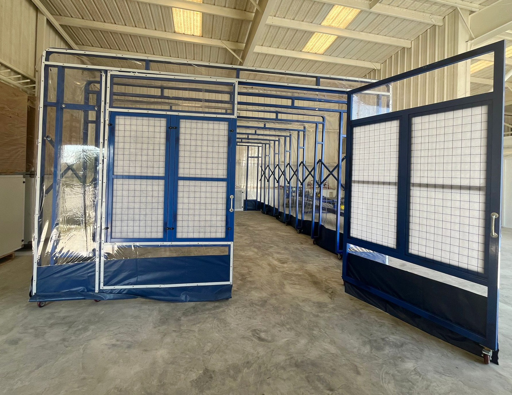 Manual Retractable Paint Booth with Hot-Dip Galvanized Square Tube Welding. Exhaust unit in the Rear. LED Lights are included.